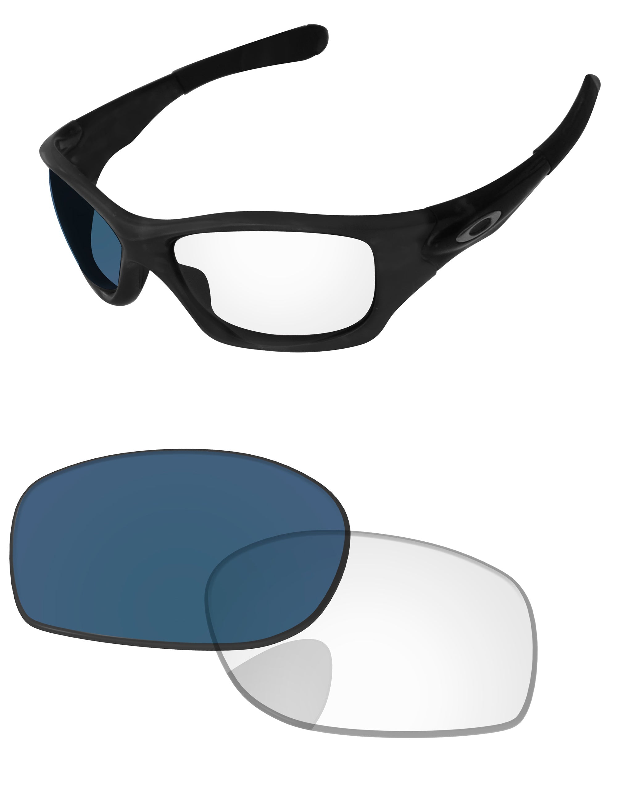 Silver photochromic lenses darken in direct UV light. Regular Transparent color indoors.