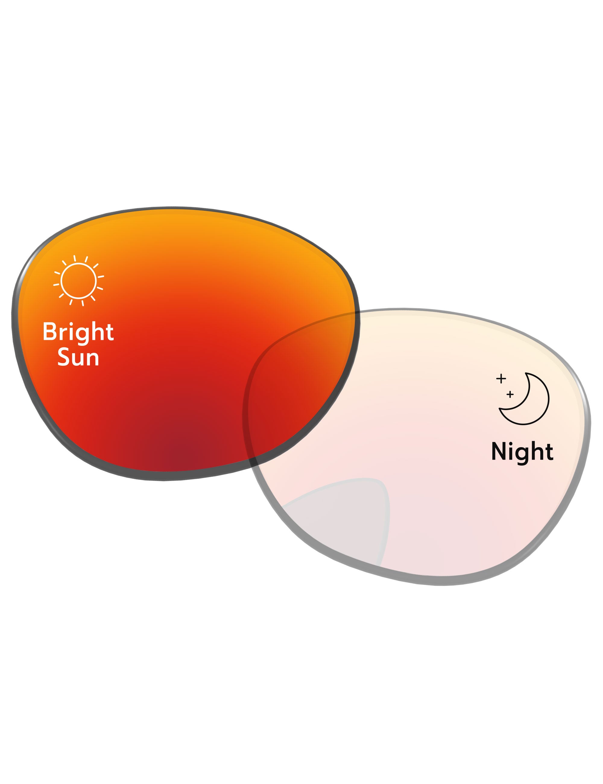 Gray photochromic lenses darken in direct UV light. Regular Transparent color indoors.