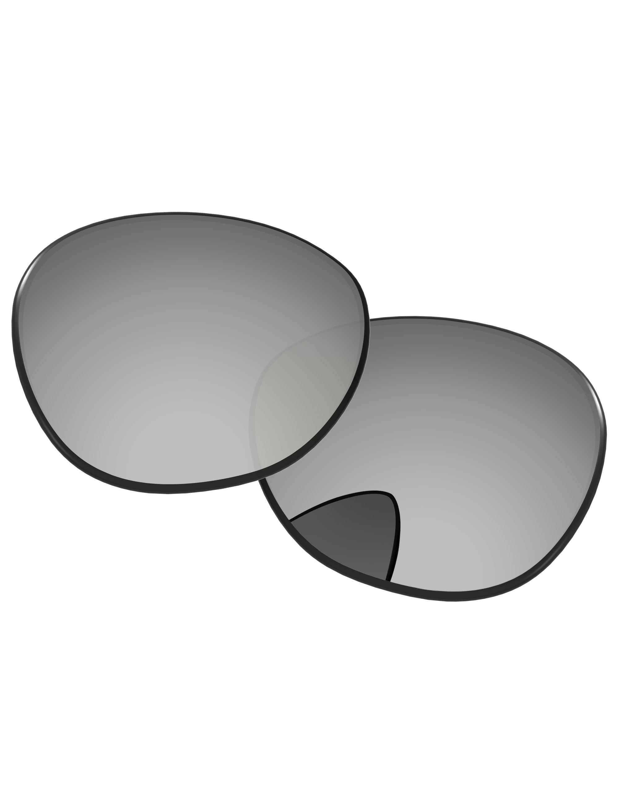 Silver photochromic lenses darken in direct UV light. Regular Transparent color indoors.