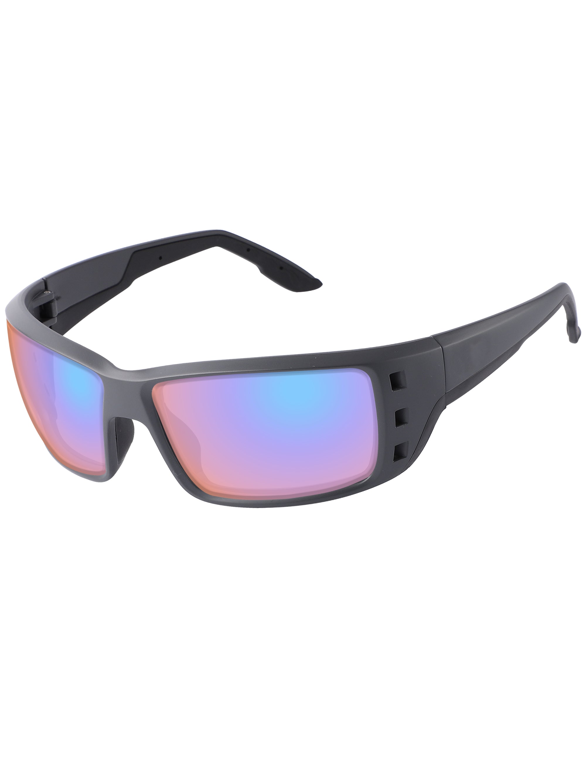 A grey lens with dark blue mirror coating that amplifies colours and improves optical comfort in bright conditions.