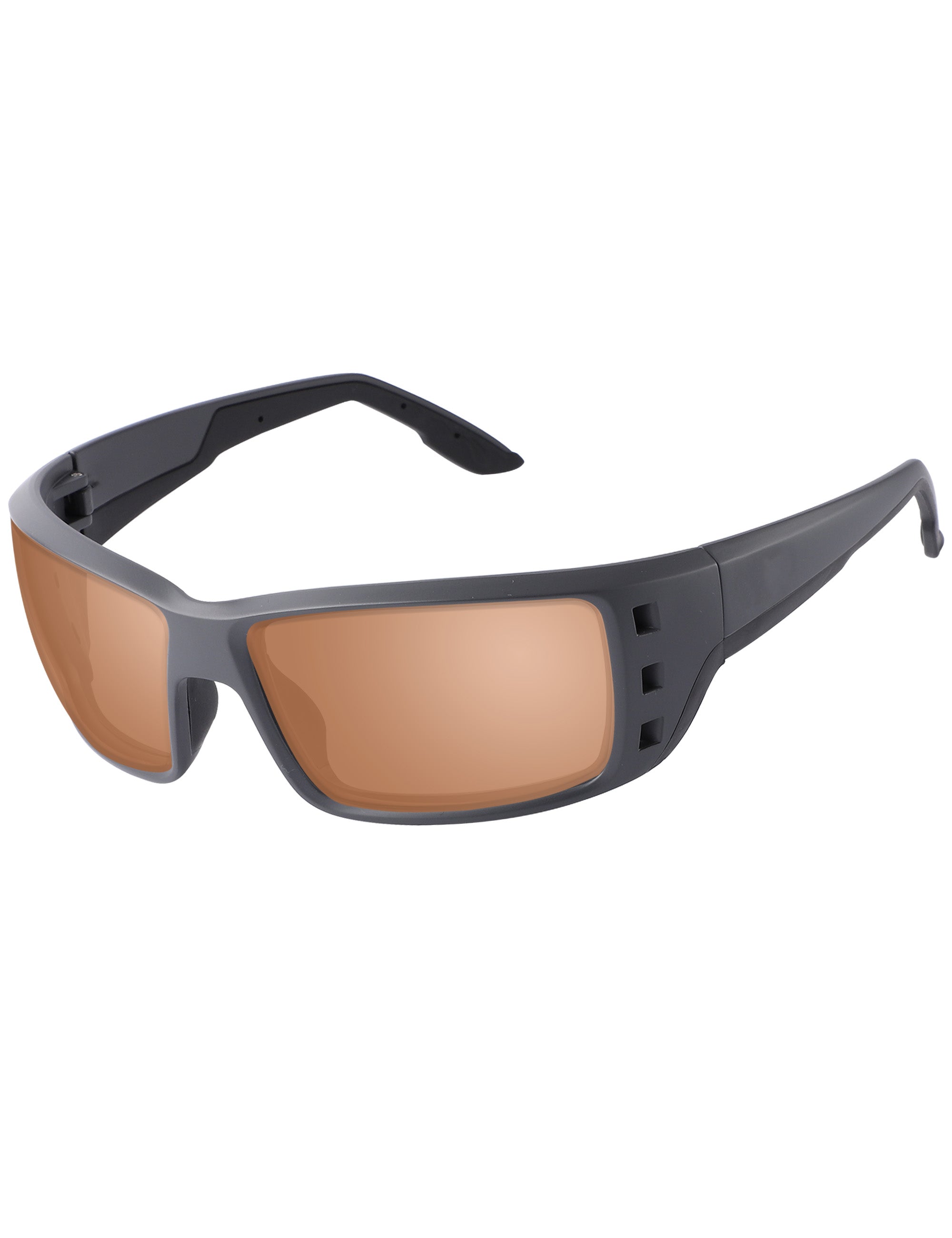 A grey lens with mixed silver and bronze mirror coating that amplifies colours and improves optical comfort in bright conditions.