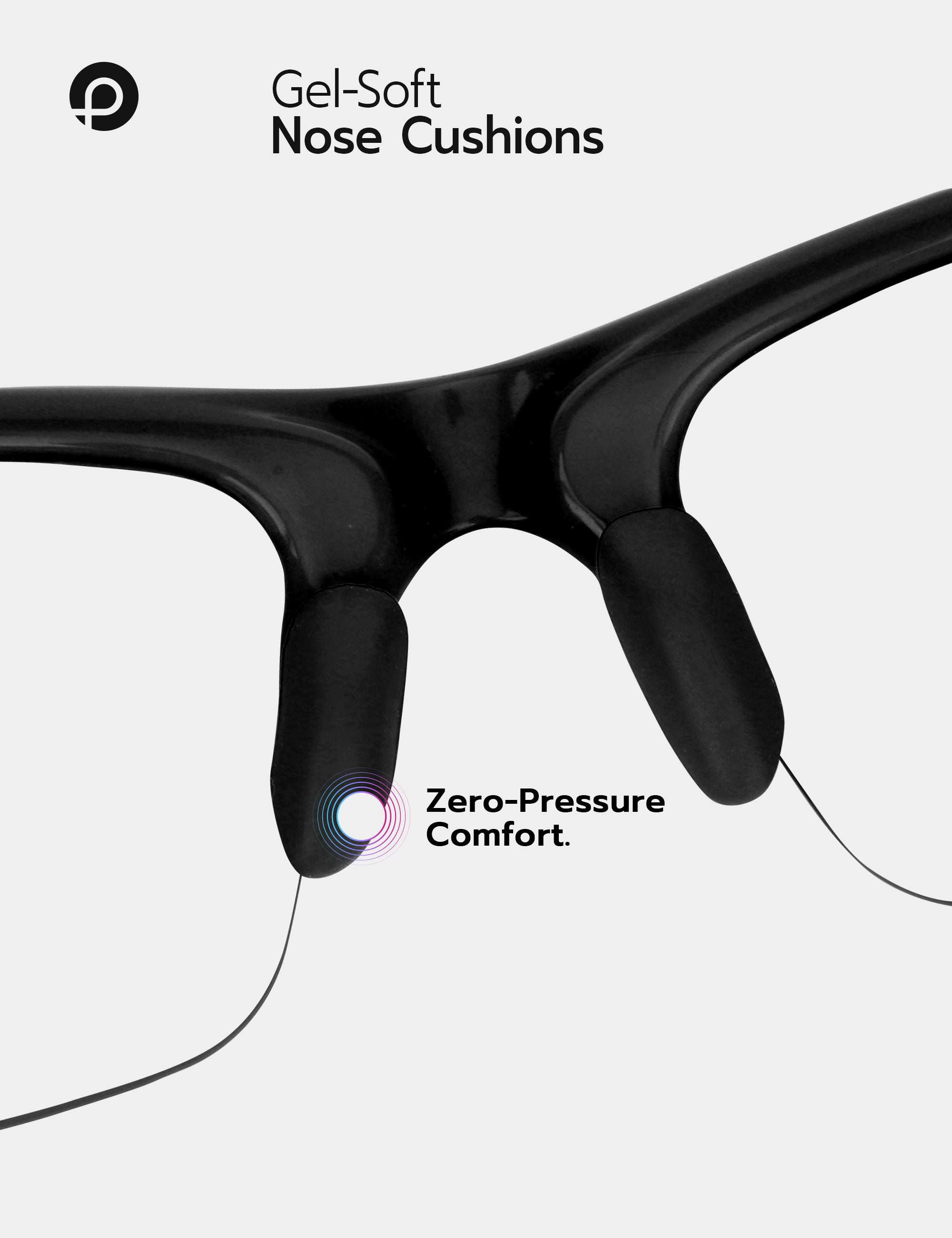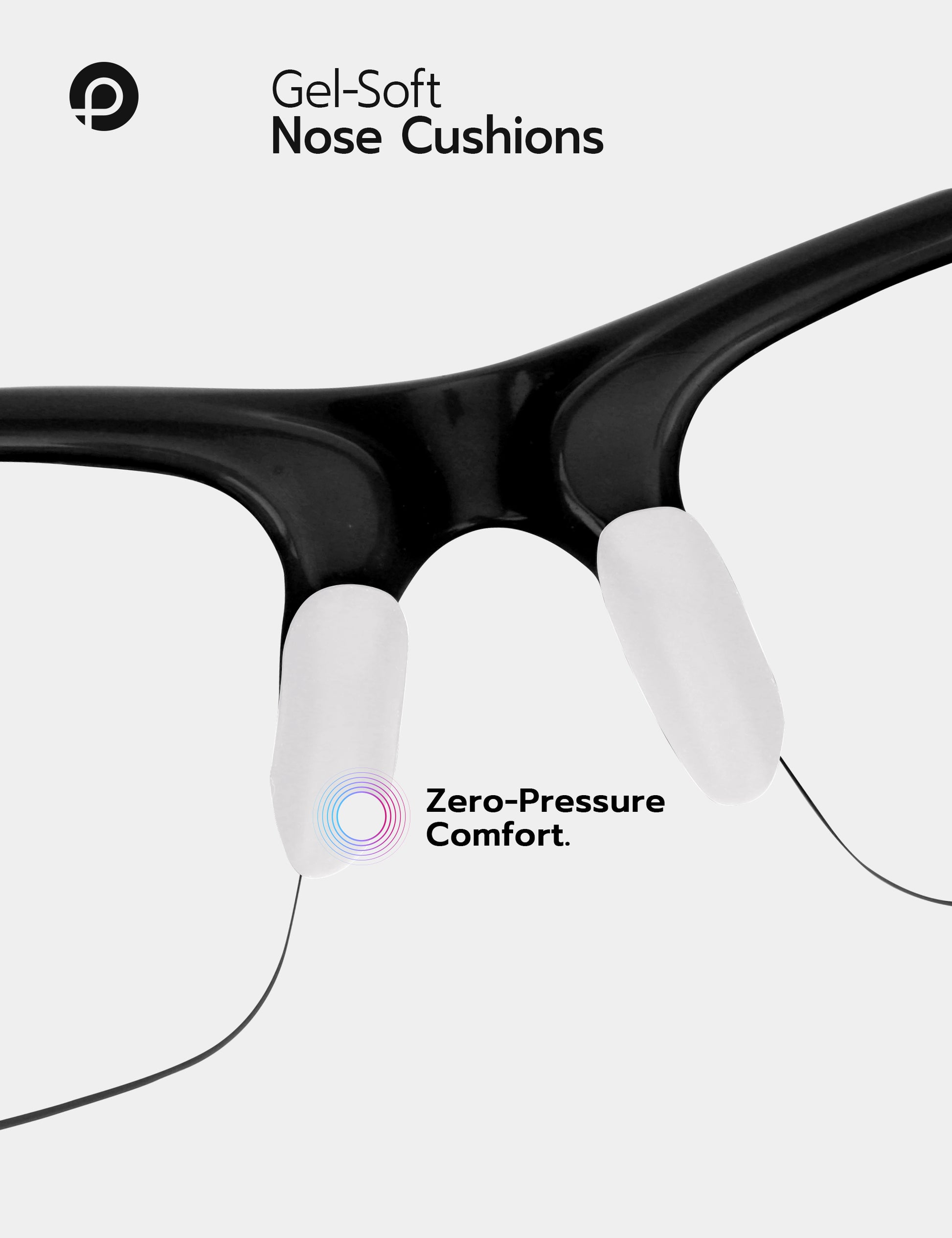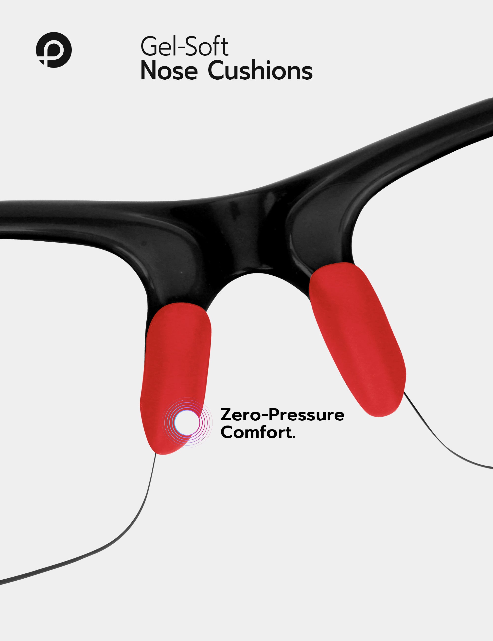 Soft rubber cushions evenly distribute pressure, reducing discomfort on your nose and ears for all-day comfort, even during extended wear.