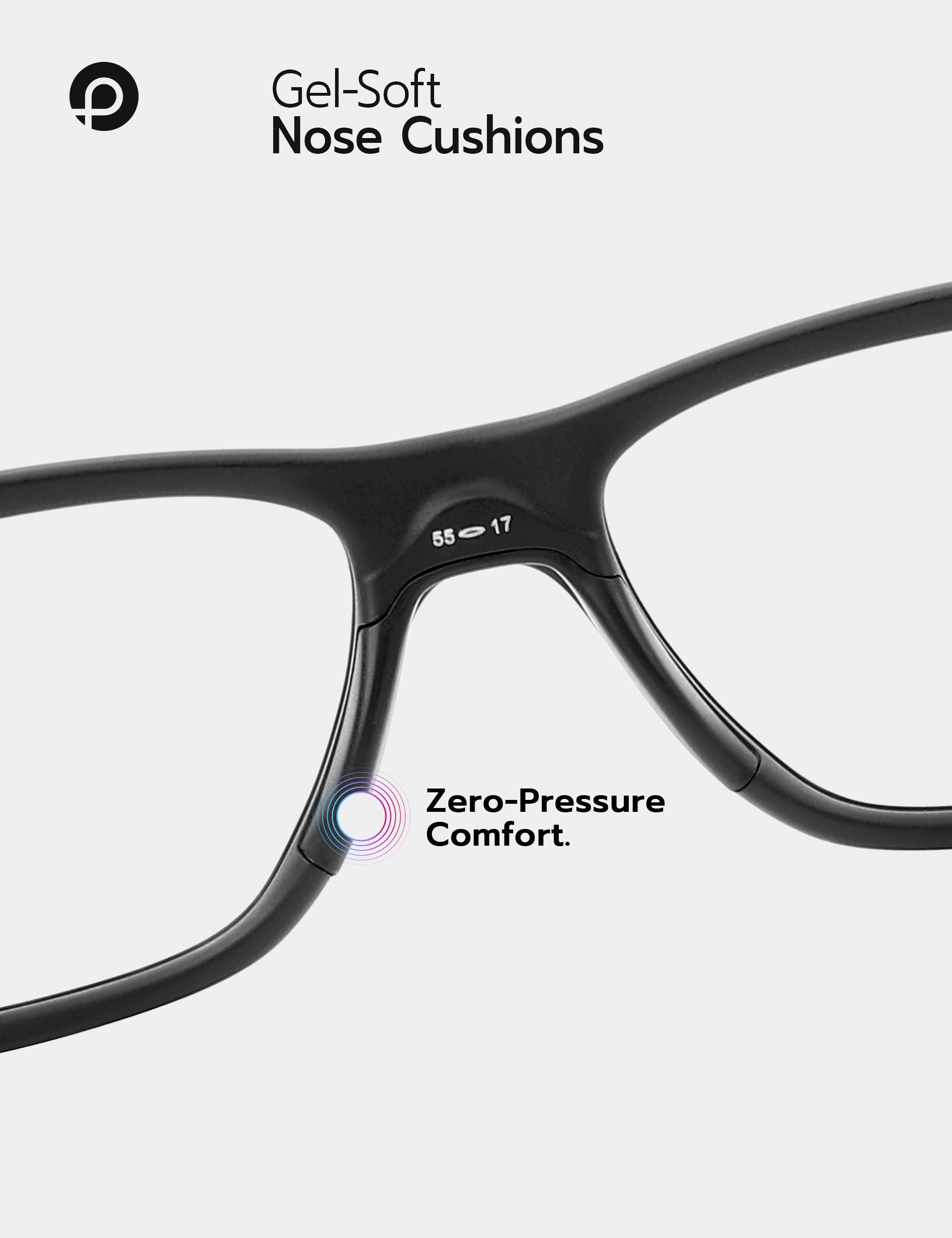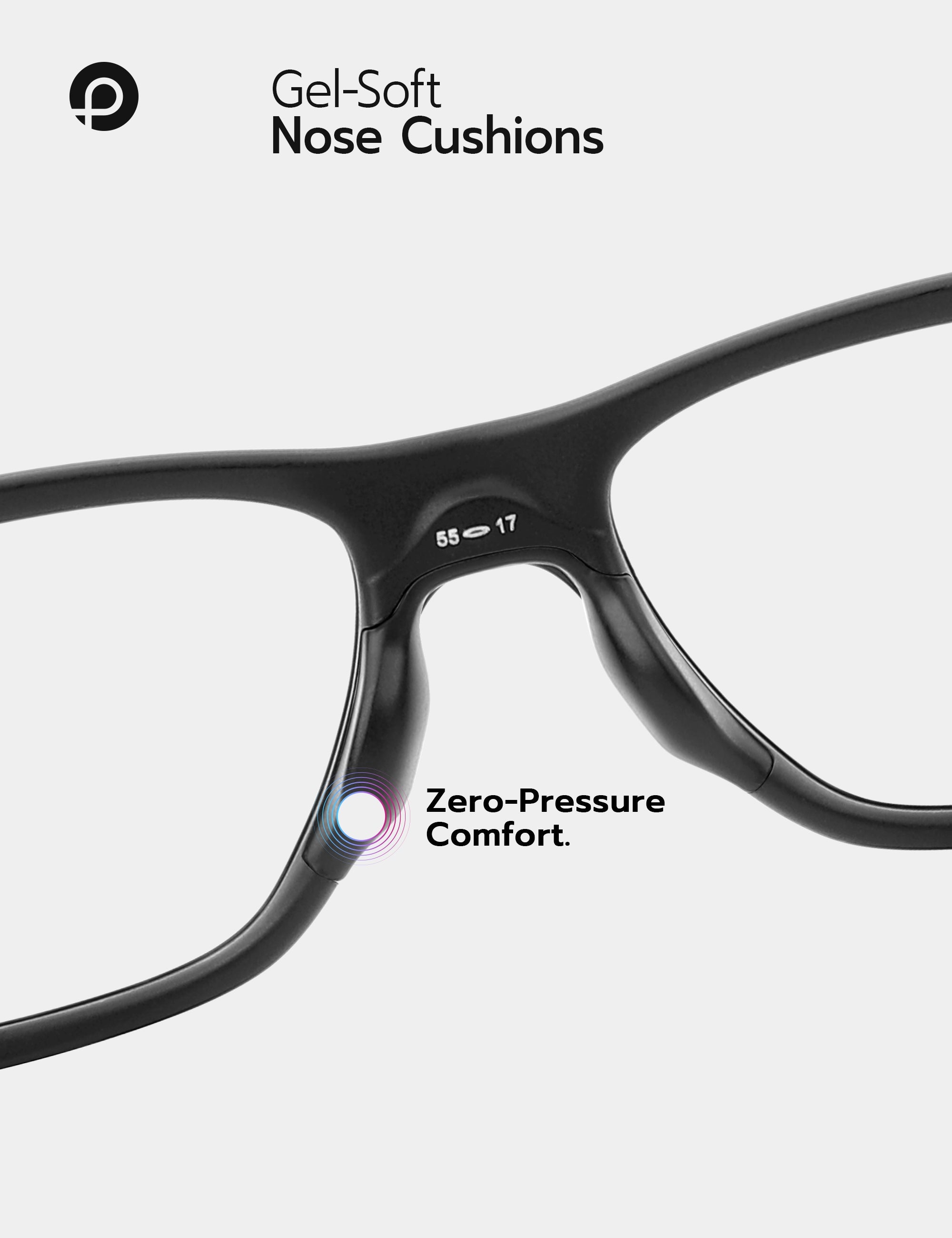 Die ergonomische Formgebung verteilt das Gewicht gleichmäßig und entlastet so Druckstellen an Nase und Ohren für ganztägigen Tragekomfort.