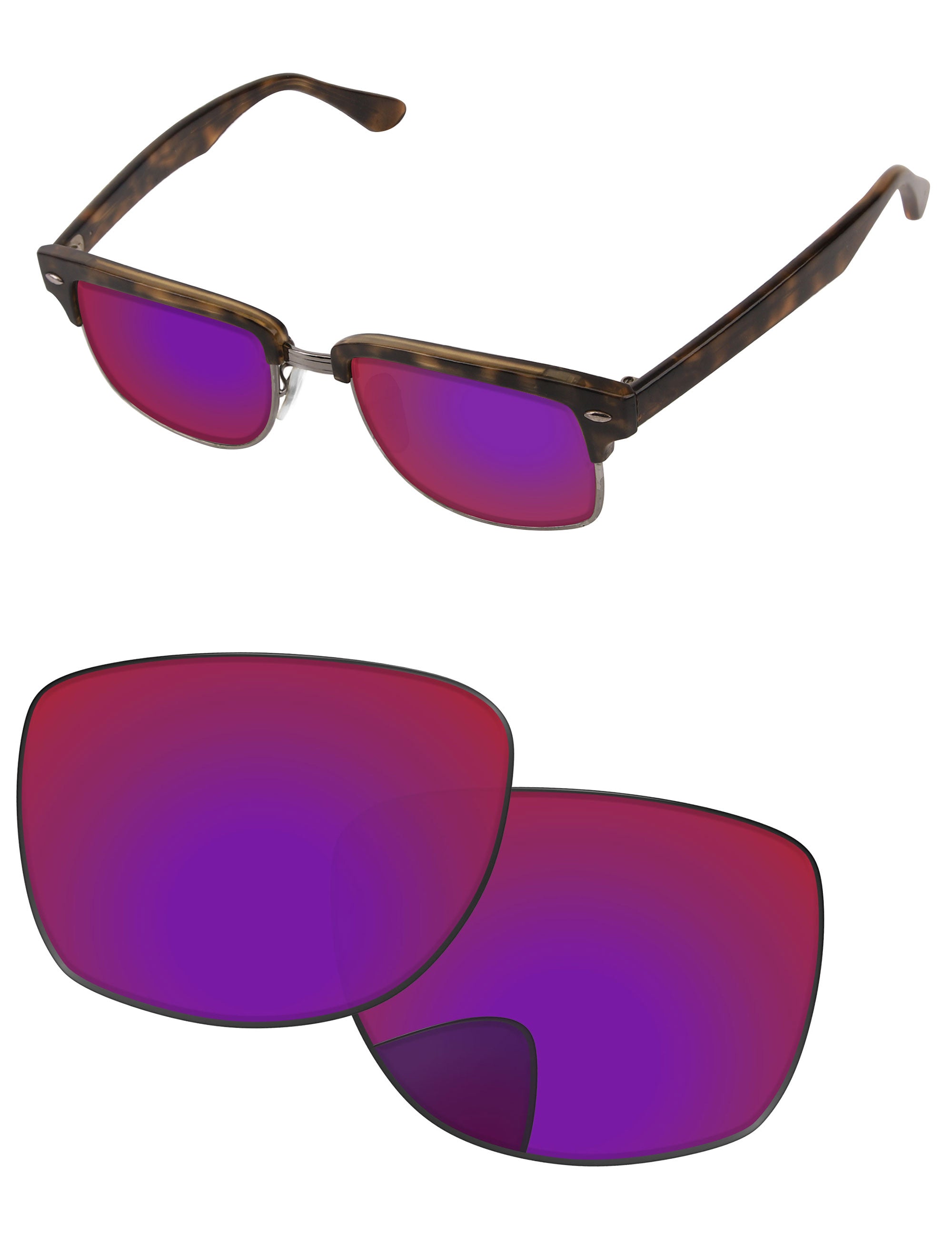 Eine graue Linse mit purpurroter Spiegelbeschichtung, die die Farben verstärkt und den Sehkomfort bei hellem Licht verbessert.