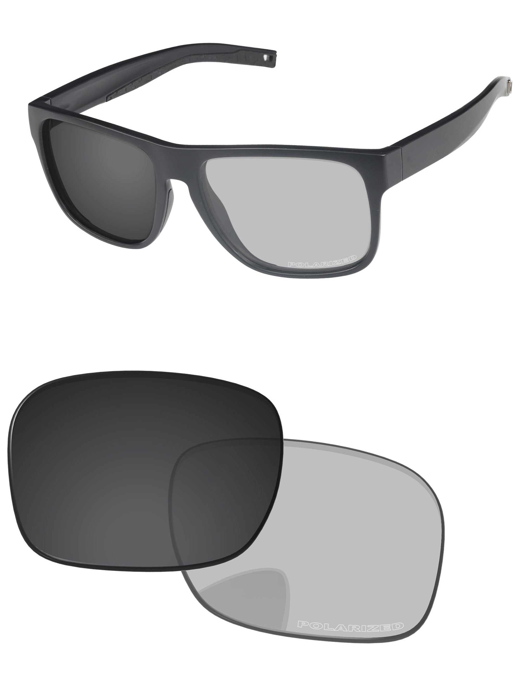 Gray photochromic lenses darken in direct UV light. Regular Transparent color indoors.