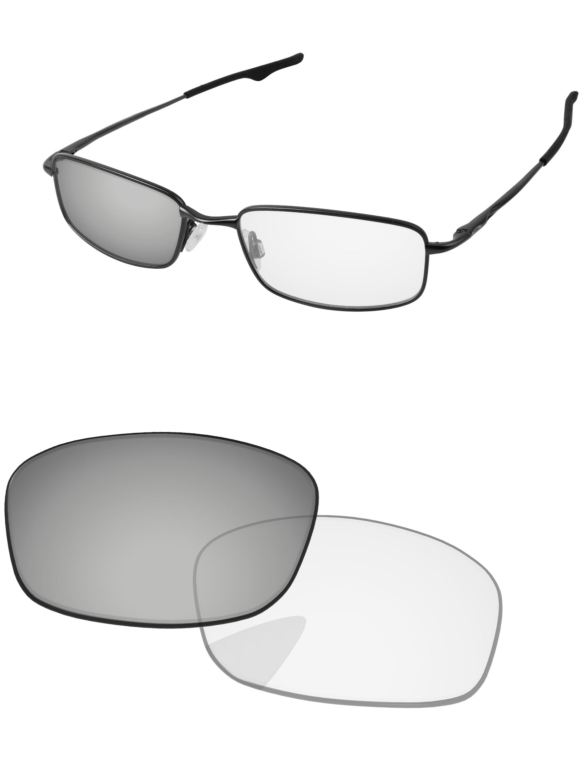 Silver photochromic lenses darken in direct UV light. Regular Transparent color indoors.