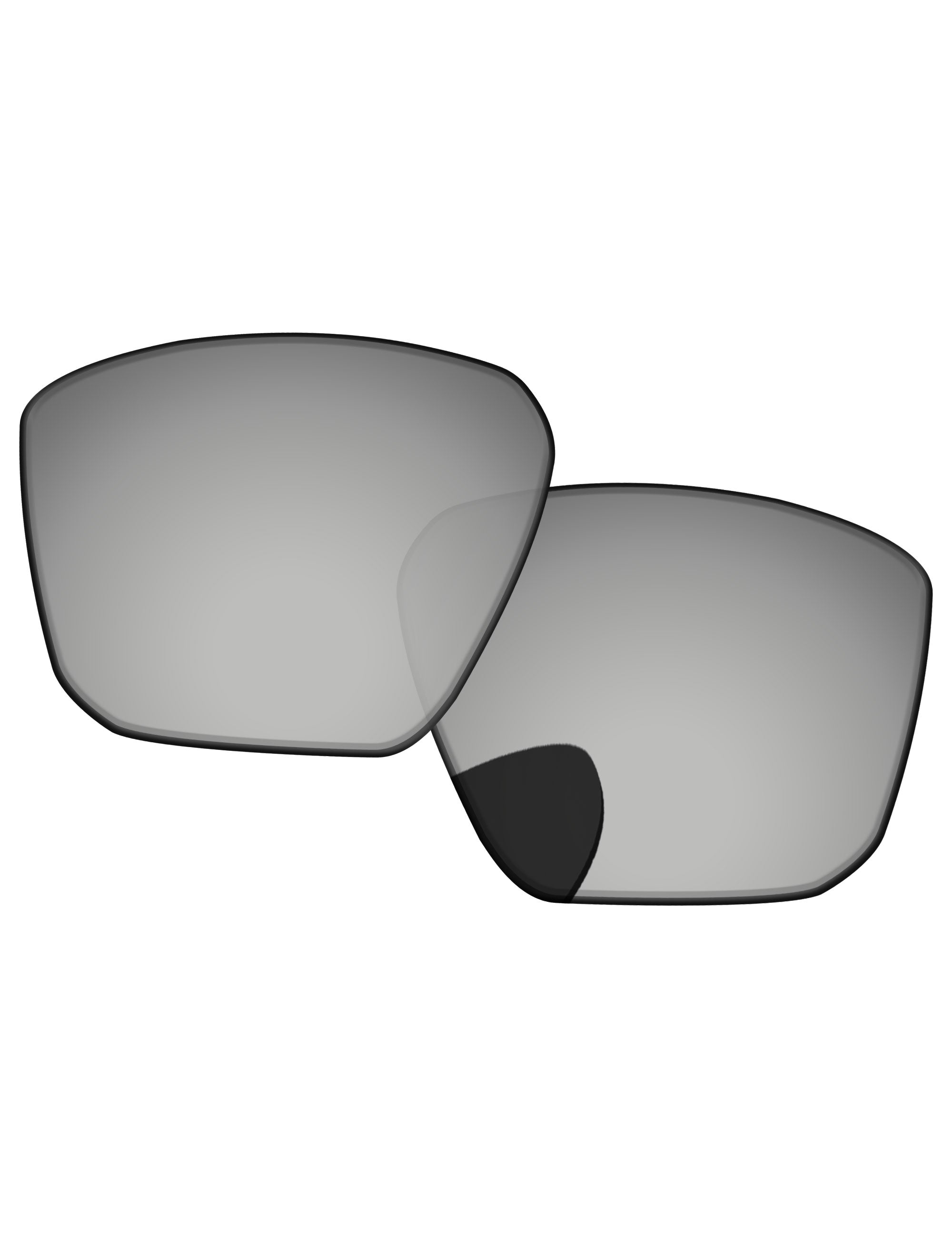 Silver photochromic lenses darken in direct UV light. Regular Transparent color indoors.