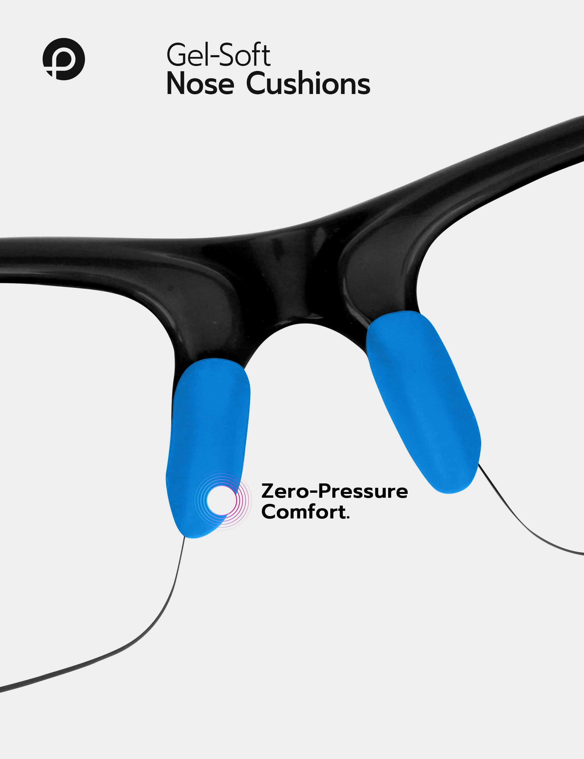 Soft rubber cushions evenly distribute pressure, reducing discomfort on your nose and ears for all-day comfort, even during extended wear.