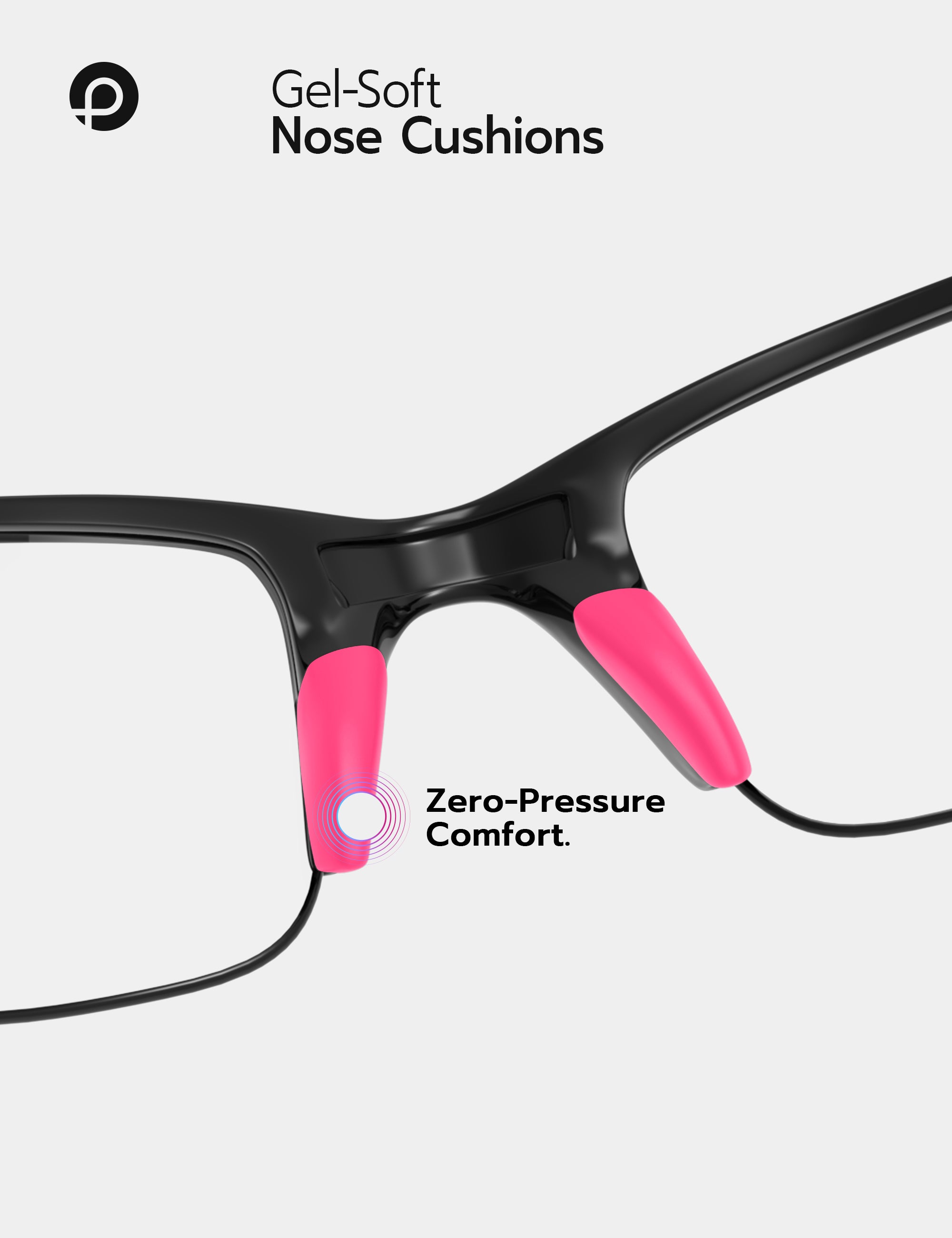 Soft rubber cushions evenly distribute pressure, reducing discomfort on your nose and ears for all-day comfort, even during extended wear.