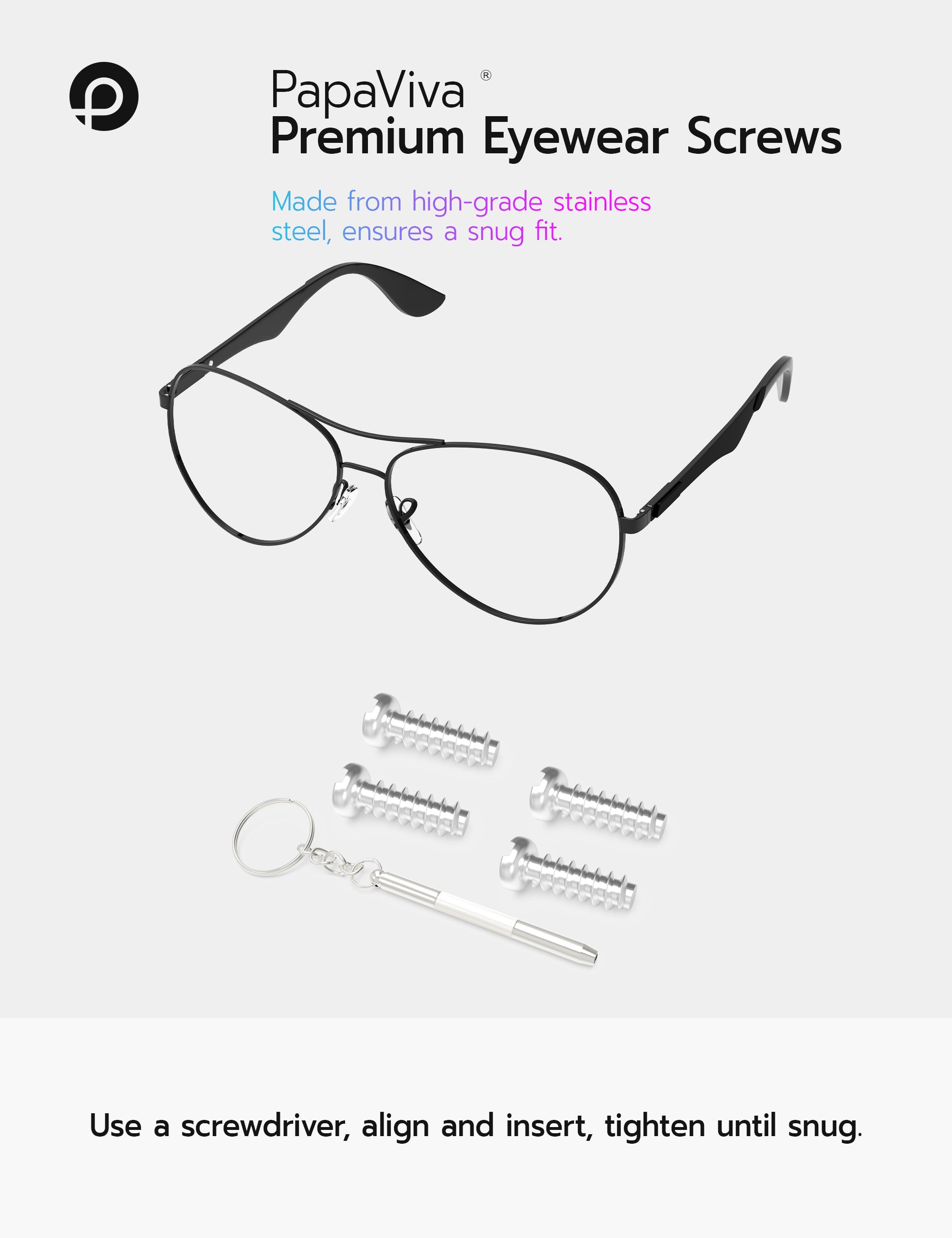 緩んだネジ、紛失したネジ、摩耗したネジを修理するのに最適で、大切なアイウェアを効果的にリフレッシュし、その寿命を延ばします。
