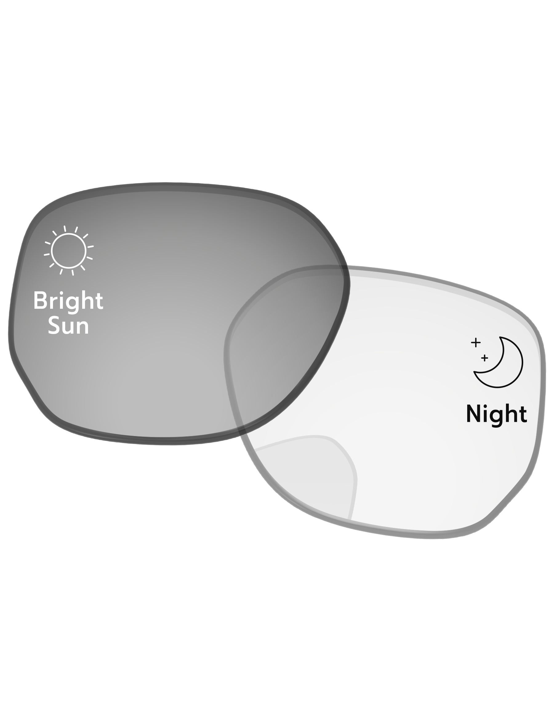 Gray photochromic lenses darken in direct UV light. Regular Transparent color indoors.